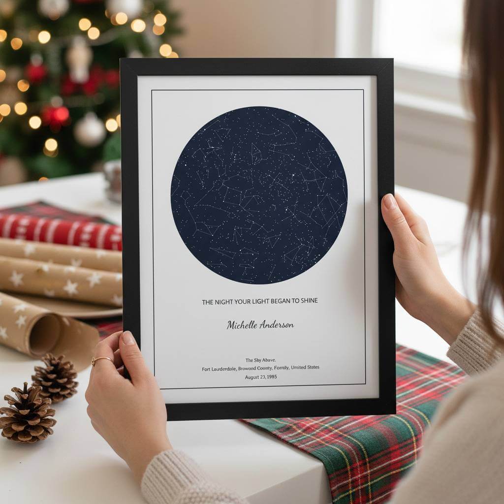 Discover the magic of our Custom Star Map Posters, where you can create a truly unique gift for your loved ones. Each map captures the starry sky as it appeared on a significant day—whether it’s a birthday, wedding anniversary, or any milestone that deserves to be remembered.