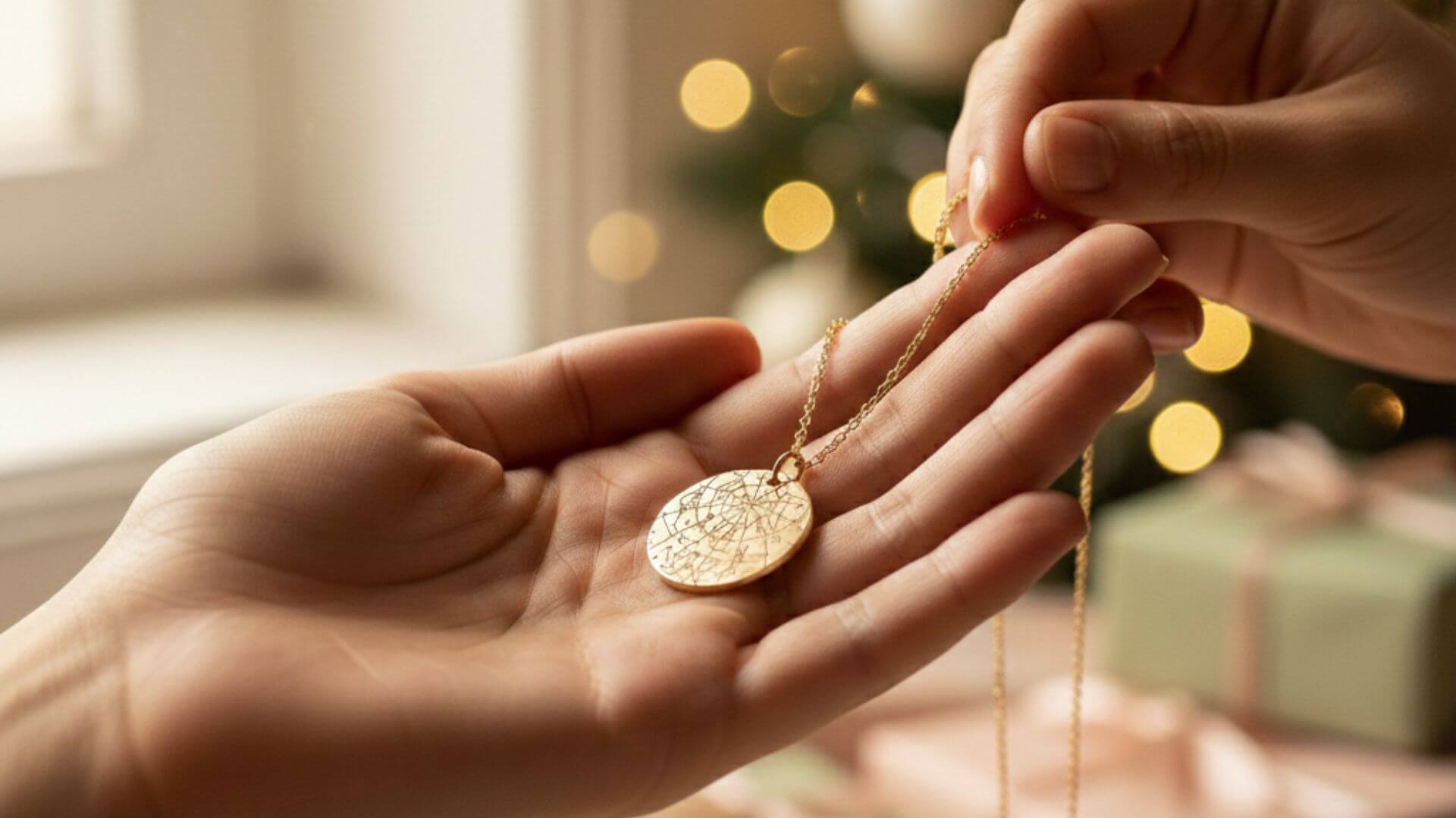 Give a truly meaningful gift this Christmas with our Personalized Star Map Necklace. This unique piece shows the stars exactly as they appeared on a special day and place of your choice—making it a personal and unforgettable keepsake. Arrives ready to gift in a beautiful box with a festive holiday card.